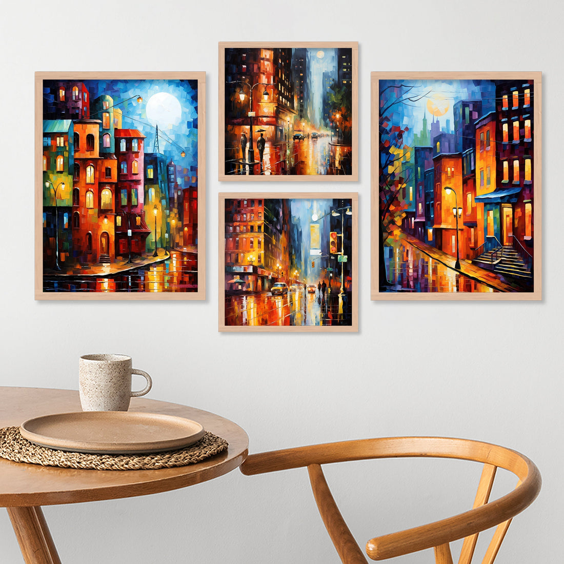 Amazing City Streets In Midnight Art Framed Wall Painting SIZE AND QUALITY Dimension:- 10 inch x...