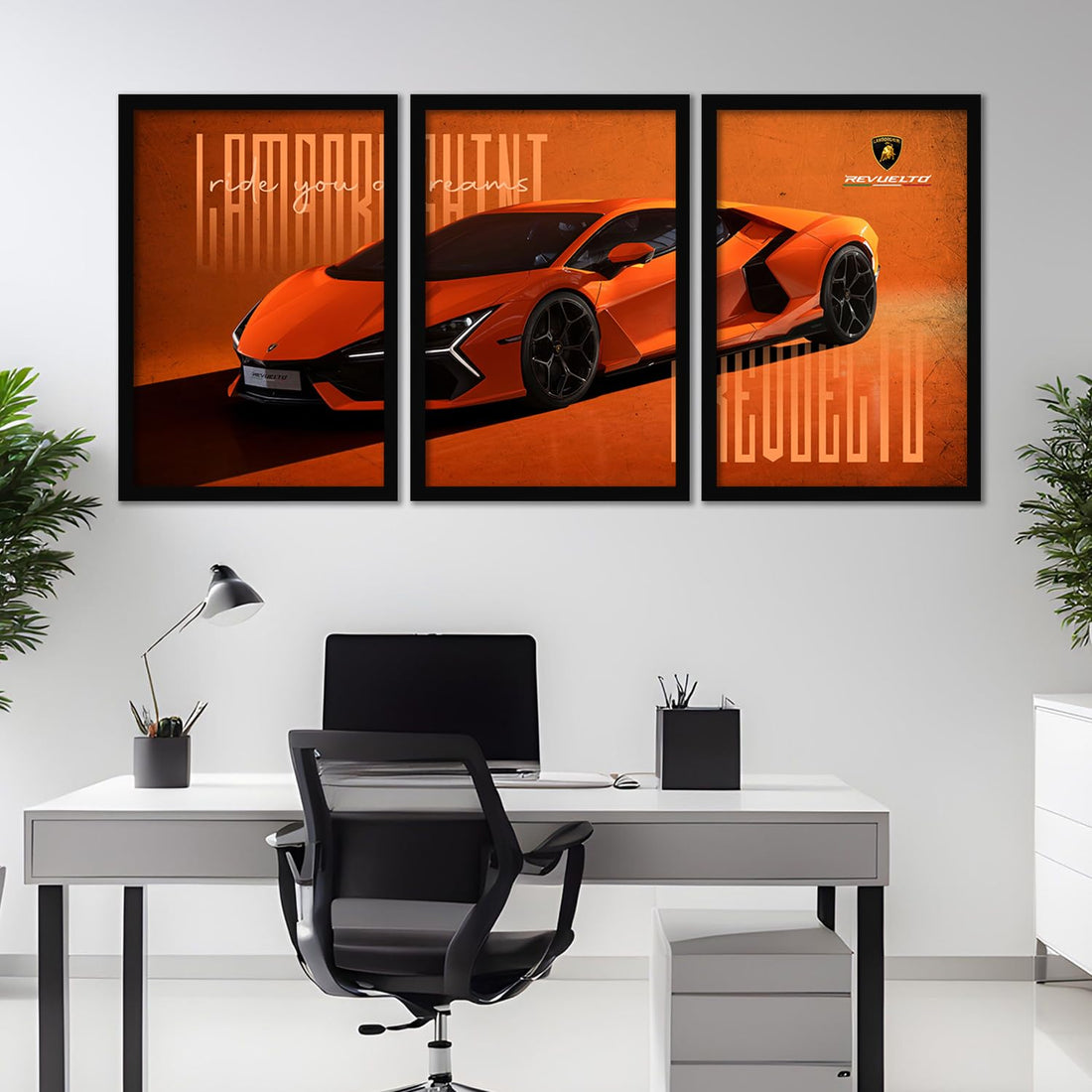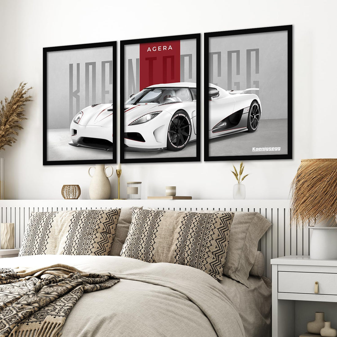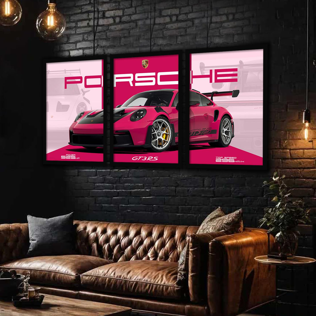 Transform your living space into a high-octane gallery with this stunning set of three framed...