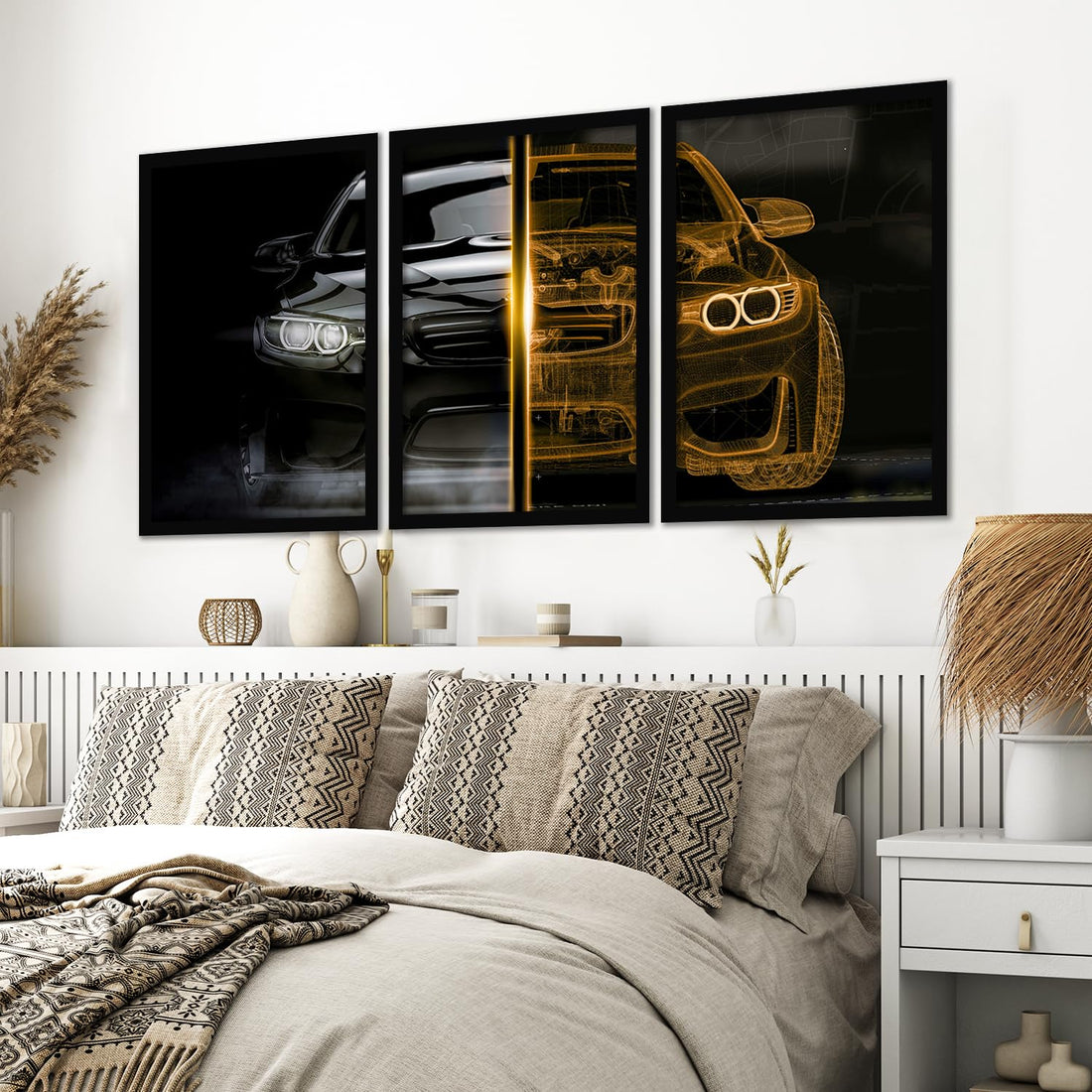 Transform your living space into a sophisticated automotive gallery with this stunning set of three...