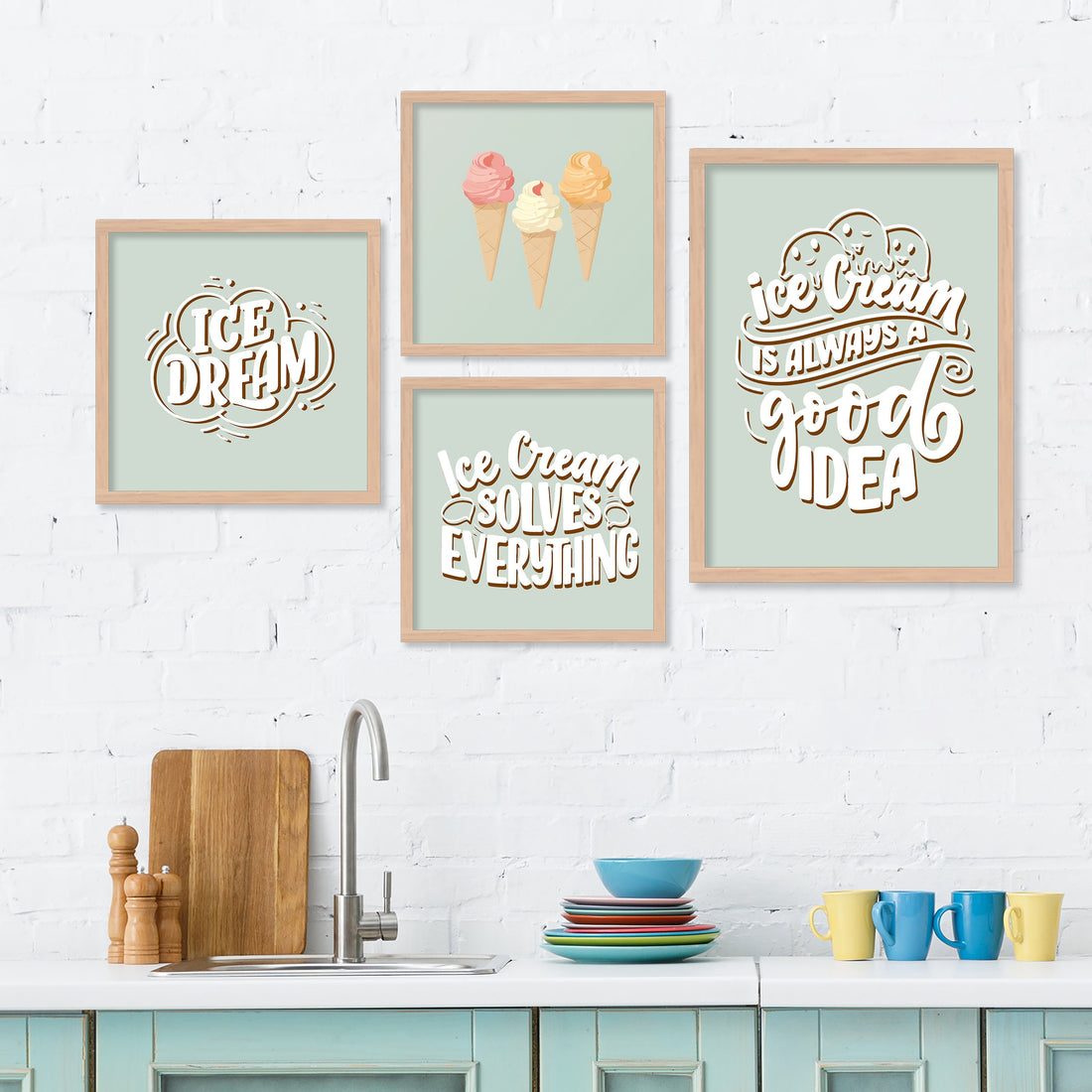 Ice Cream Solves Everything Food Art Framed Wall Painting SIZE AND QUALITY Dimension:- 10 inch x...