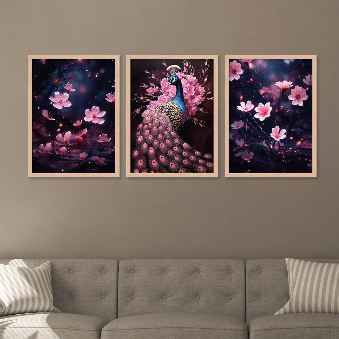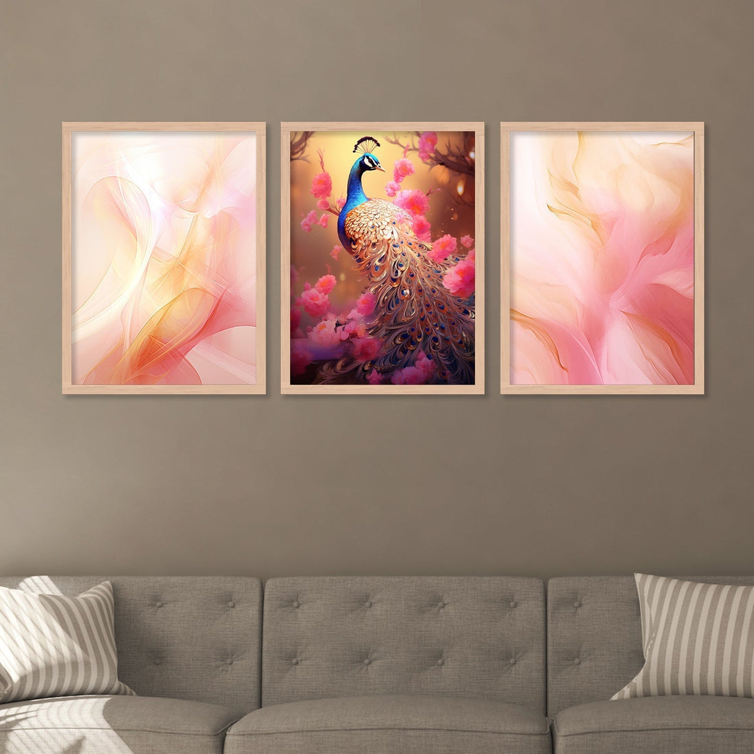 Pink Colour Shade And Peacock Wall Art