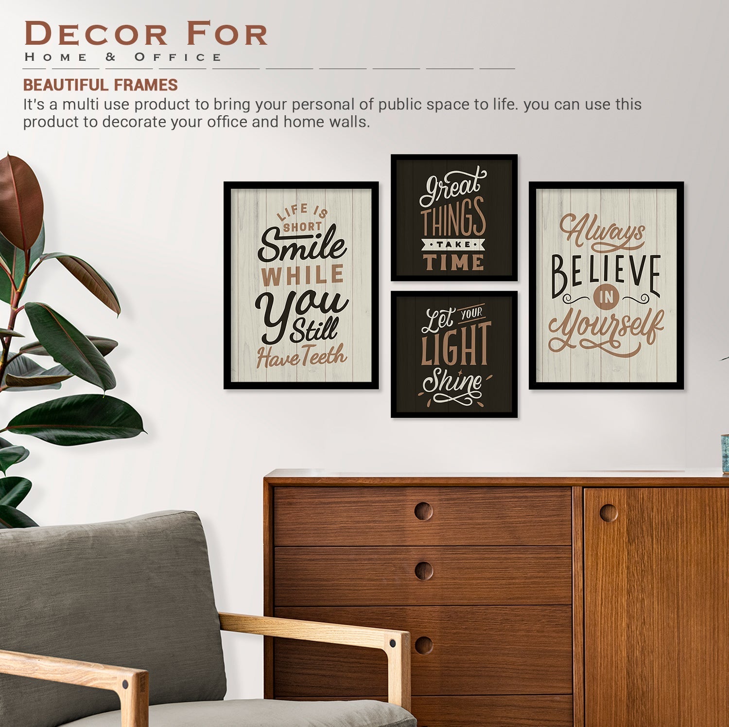 - USE WHEREVER YOU WANT - The stylish picture frames are multi-use home and office decoration item that can also be used in hostels & study room, classrooms & corridors as well as shops & cafes. In short, if you can find a wall to nail, these framed posters will stay & convey.