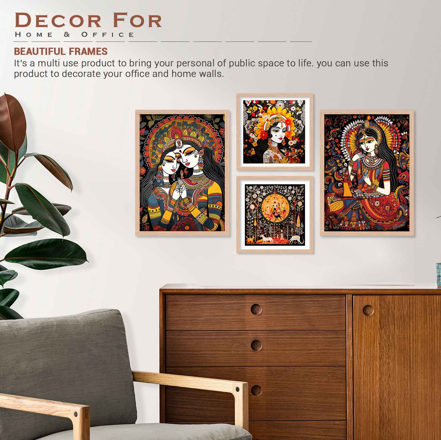 - SIZE AND QUALITY Dimension:- 10.5 inch x 13.5 inch and 13.5 inch x 17.5 inch Print Quality: The artwork is printed on 300 GSM thick paper with high quality printer and vibrant colors, to give it rich look.; PREMIUM QUALITY MATERIAL - This product come with high-quality non-breakable polycarbonate glass (plexi glass), and frame is made of synthetic wood which makes it long lasting yet modern and attractive.