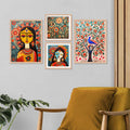 - SIZE AND QUALITY Dimension:- 10.5 inch x 13.5 inch and 13.5 inch x 17.5 inch Print Quality: The artwork is printed on 300 GSM thick paper with high quality printer and vibrant colors, to give it rich look.; PREMIUM QUALITY MATERIAL - This product come with high-quality non-breakable polycarbonate glass (plexi glass), and frame is made of synthetic wood which makes it long lasting yet modern and attractive.