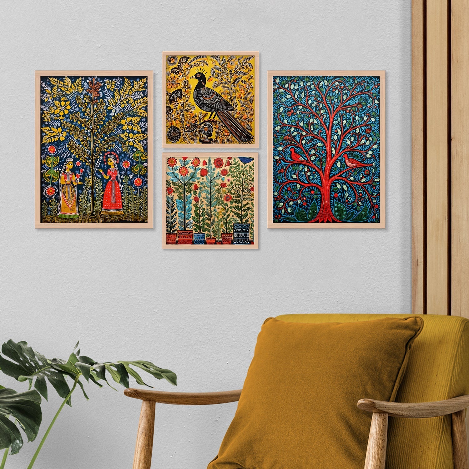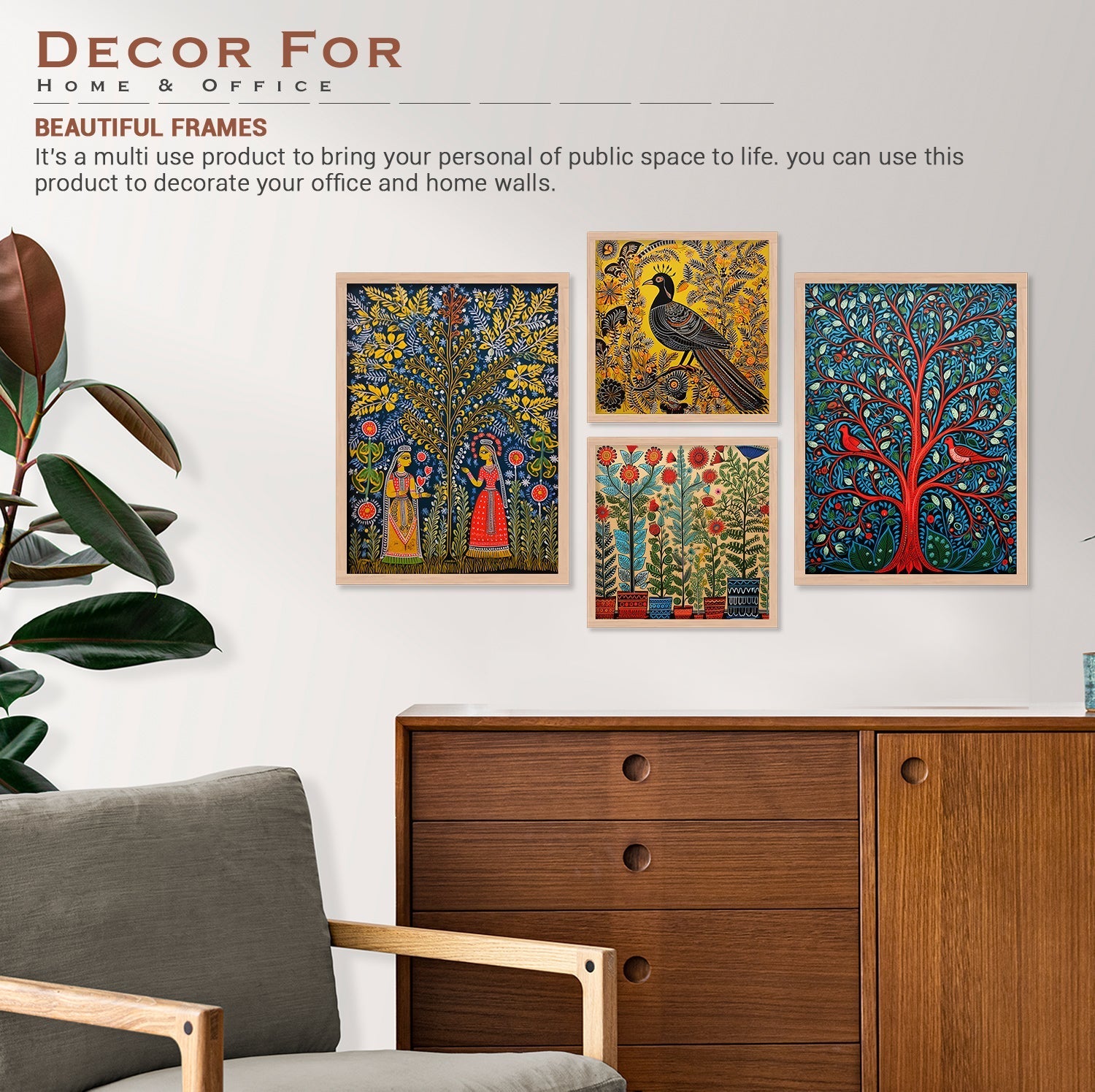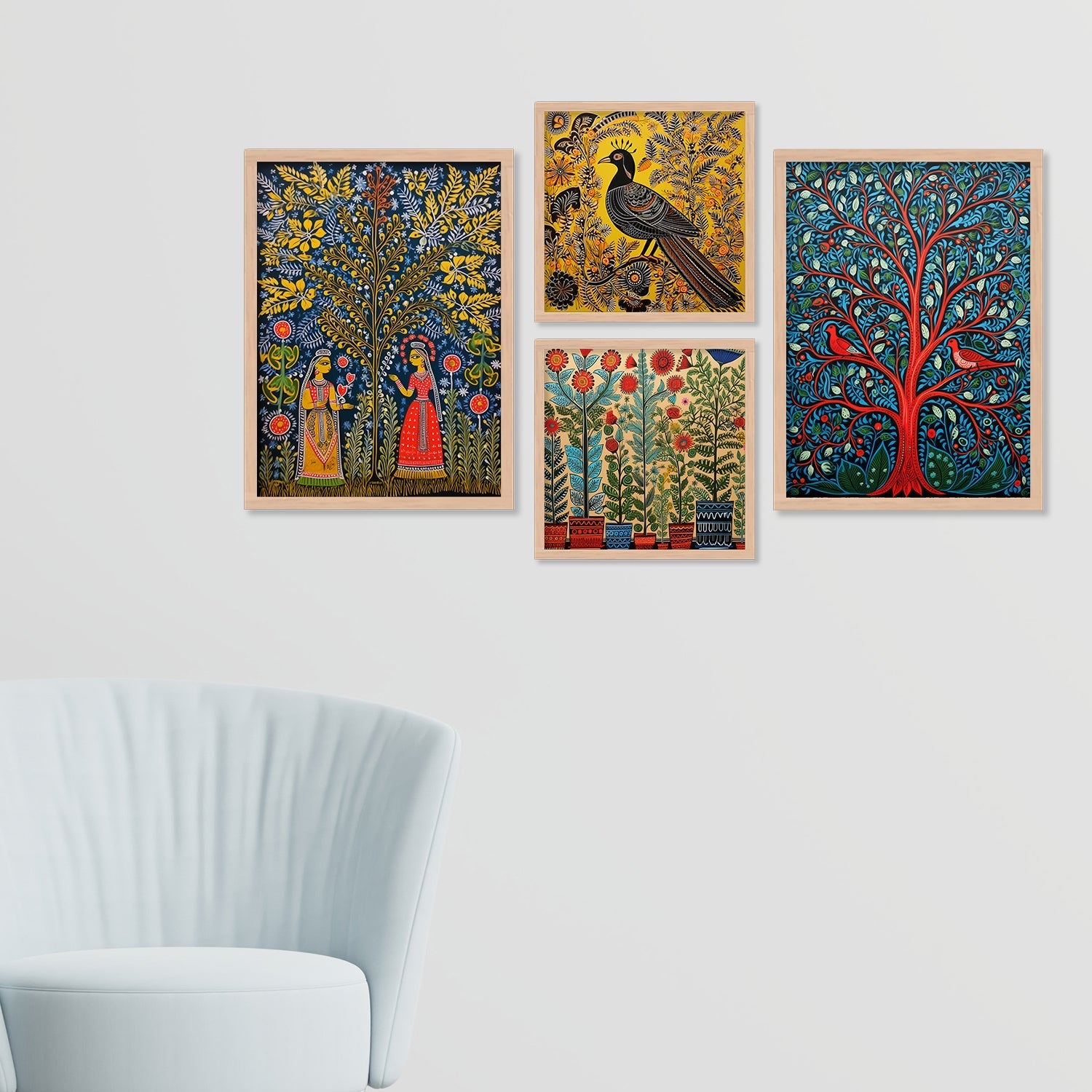 Vibrant Village Fair Madhubani Framed Wall Painting