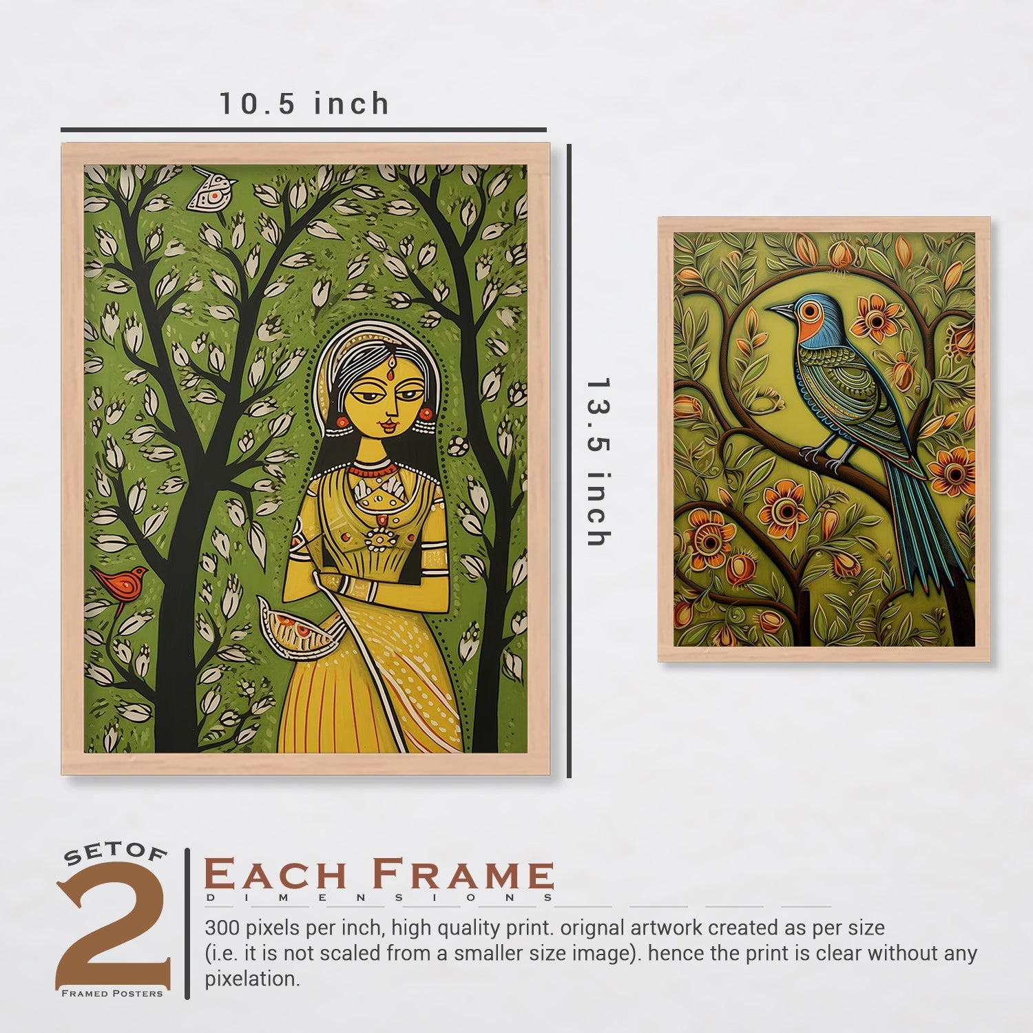 - SIZE AND QUALITY Dimension:- 10.5 inch x 13.5 inch and 13.5 inch x 17.5 inch Print Quality: The artwork is printed on 300 GSM thick paper with high quality printer and vibrant colours, to give it rich look.