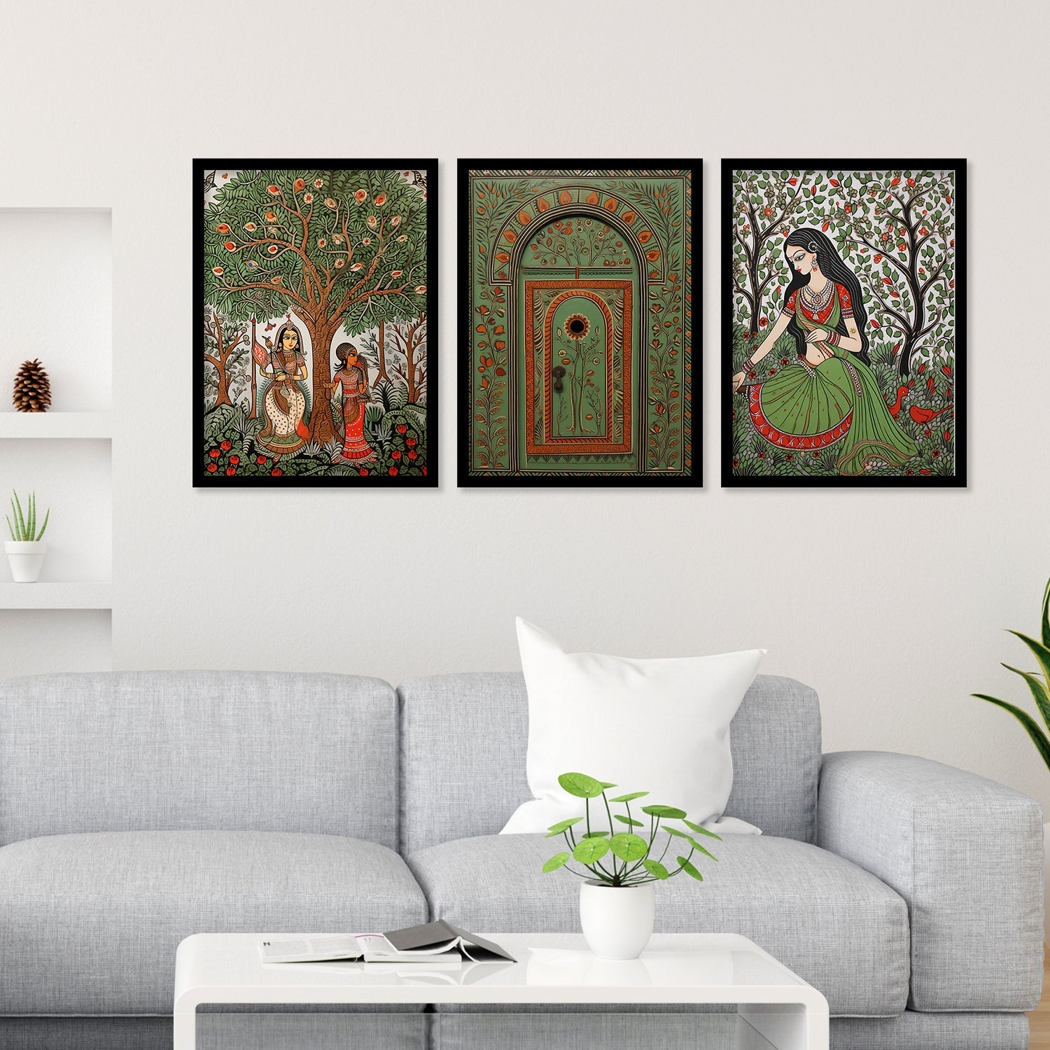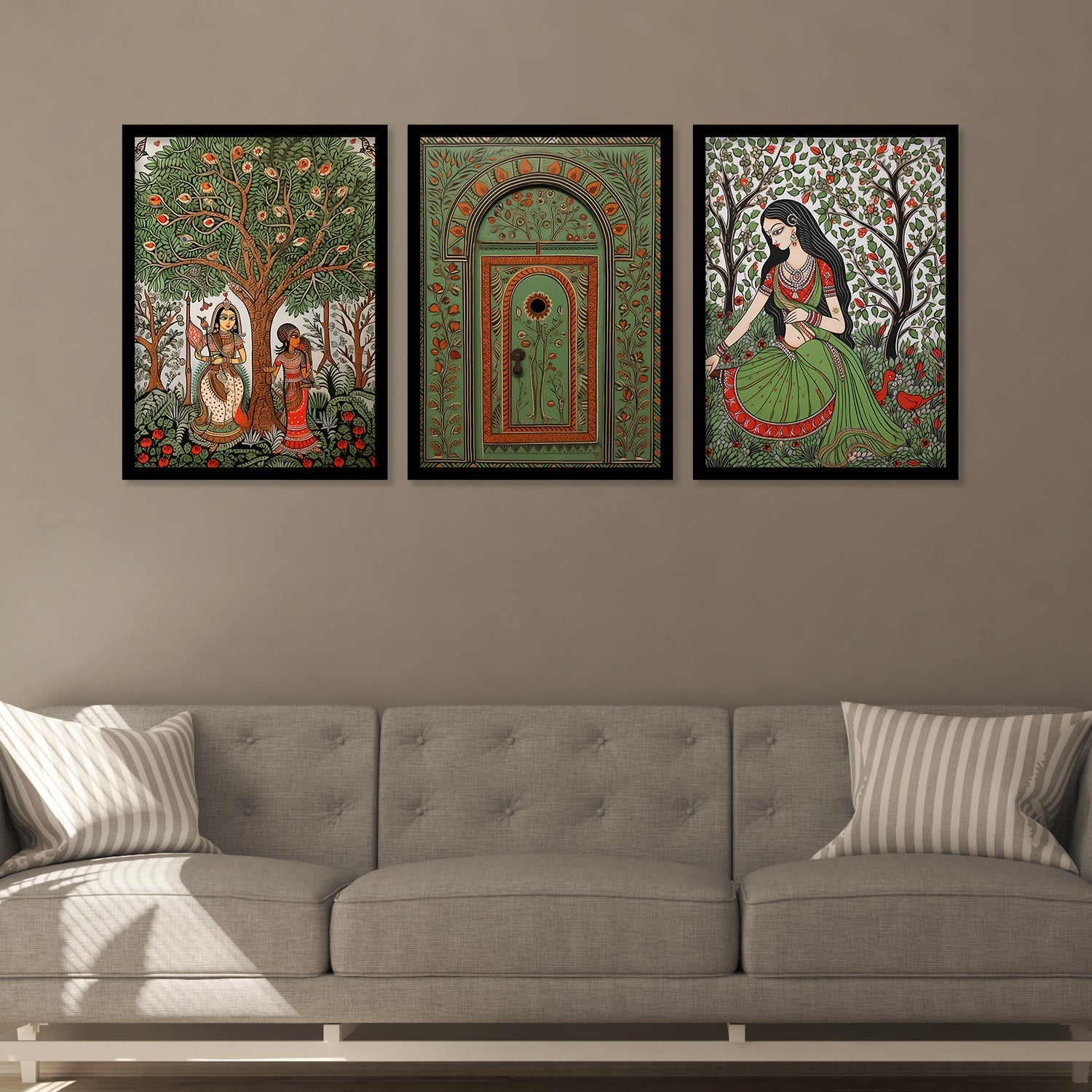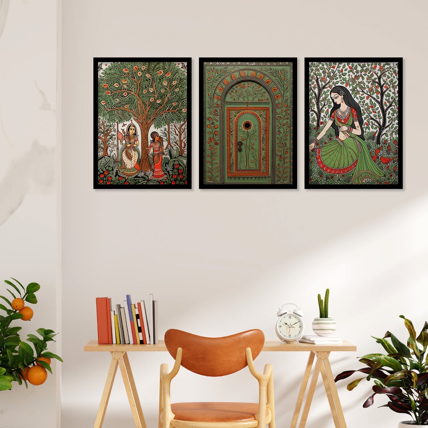 Vivid Village Virgins Madhubani Framed Wall Painting