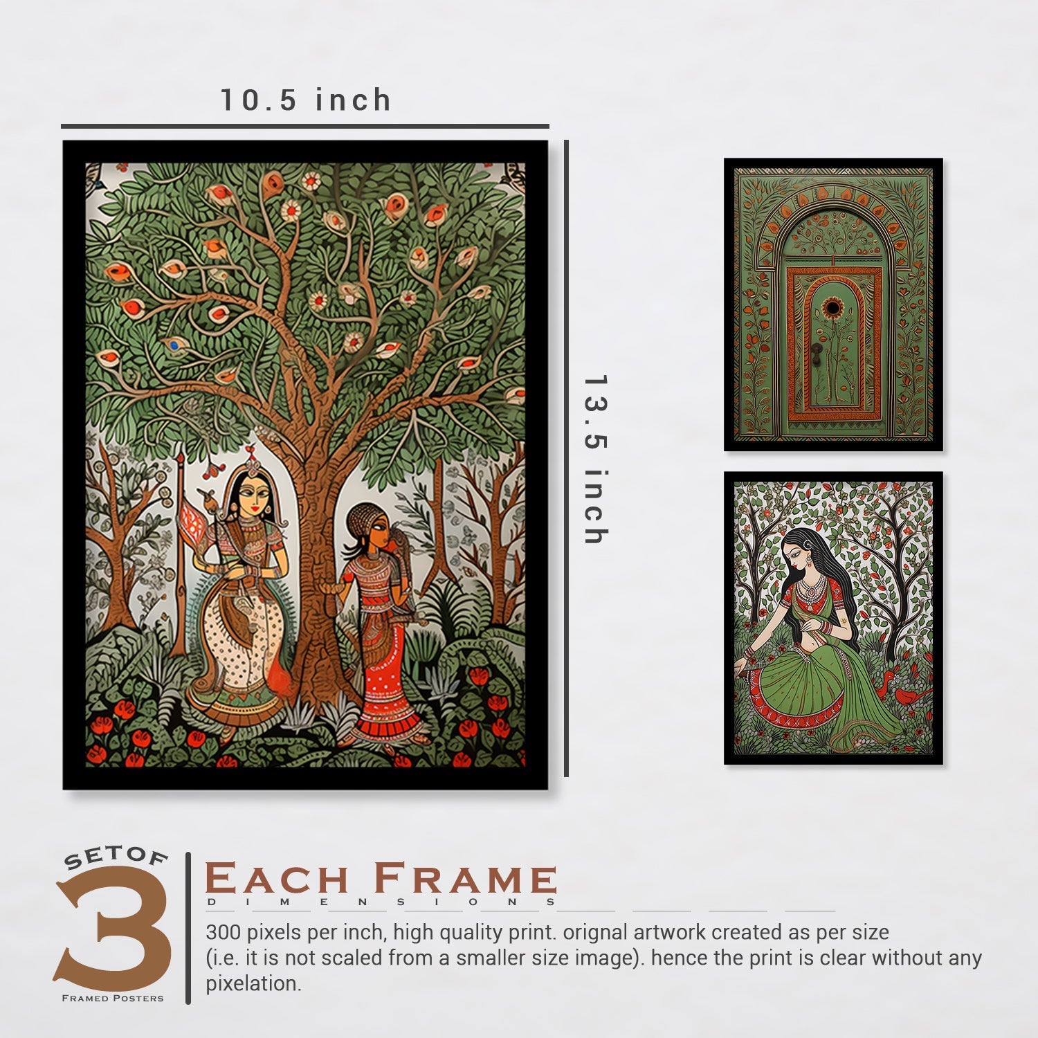 - SIZE AND QUALITY Dimension:- 10.5 inch x 13.5 inch and 13.5 inch x 17.5 inch Print Quality: The artwork is printed on 300 GSM thick paper with high quality printer and vibrant colours, to give it rich look.