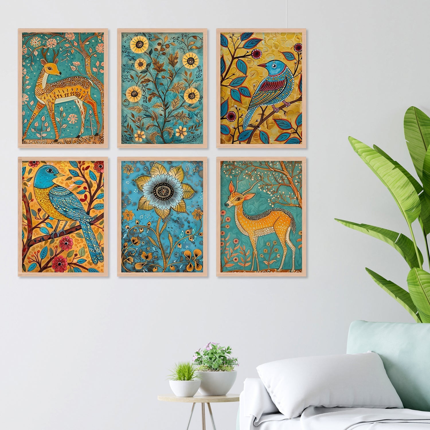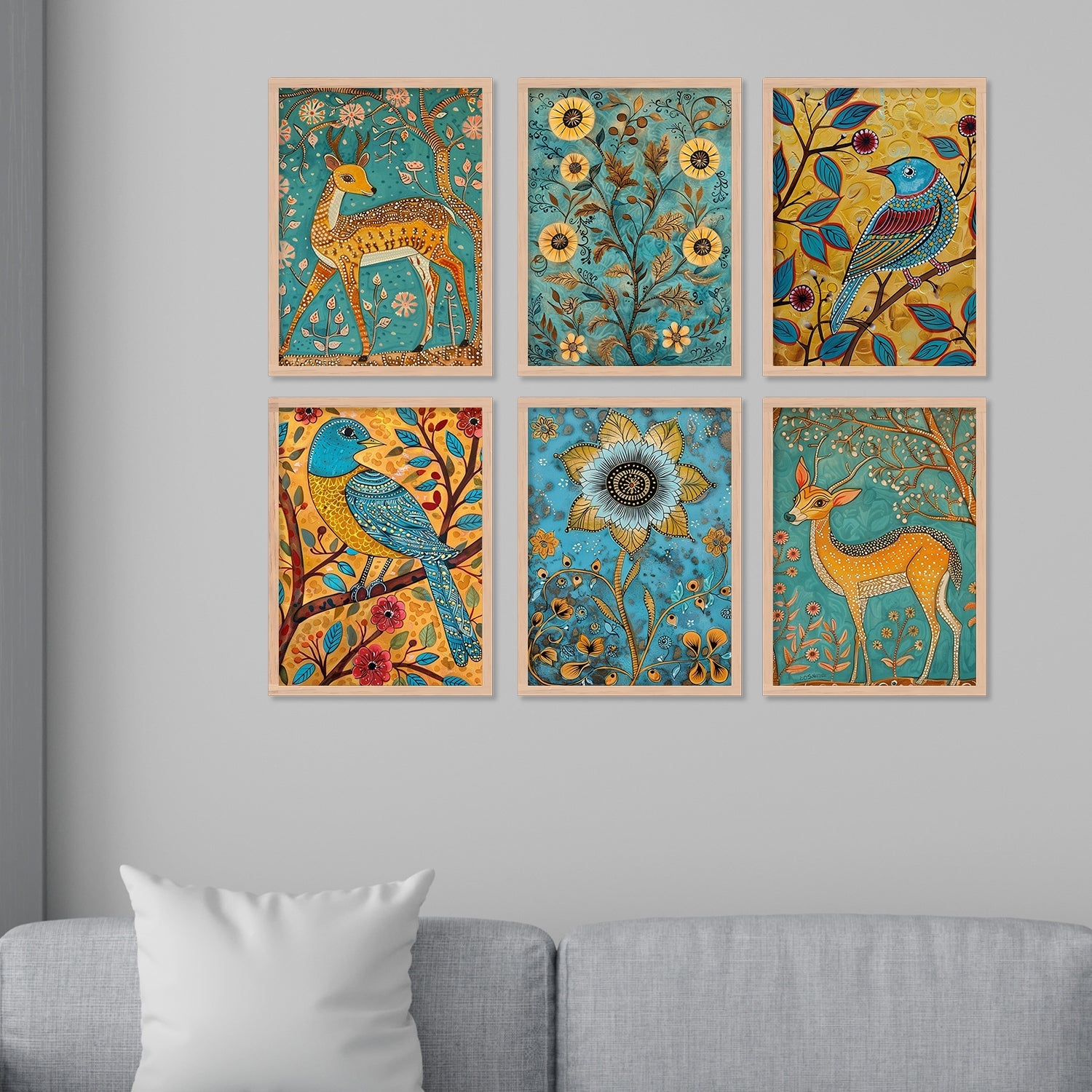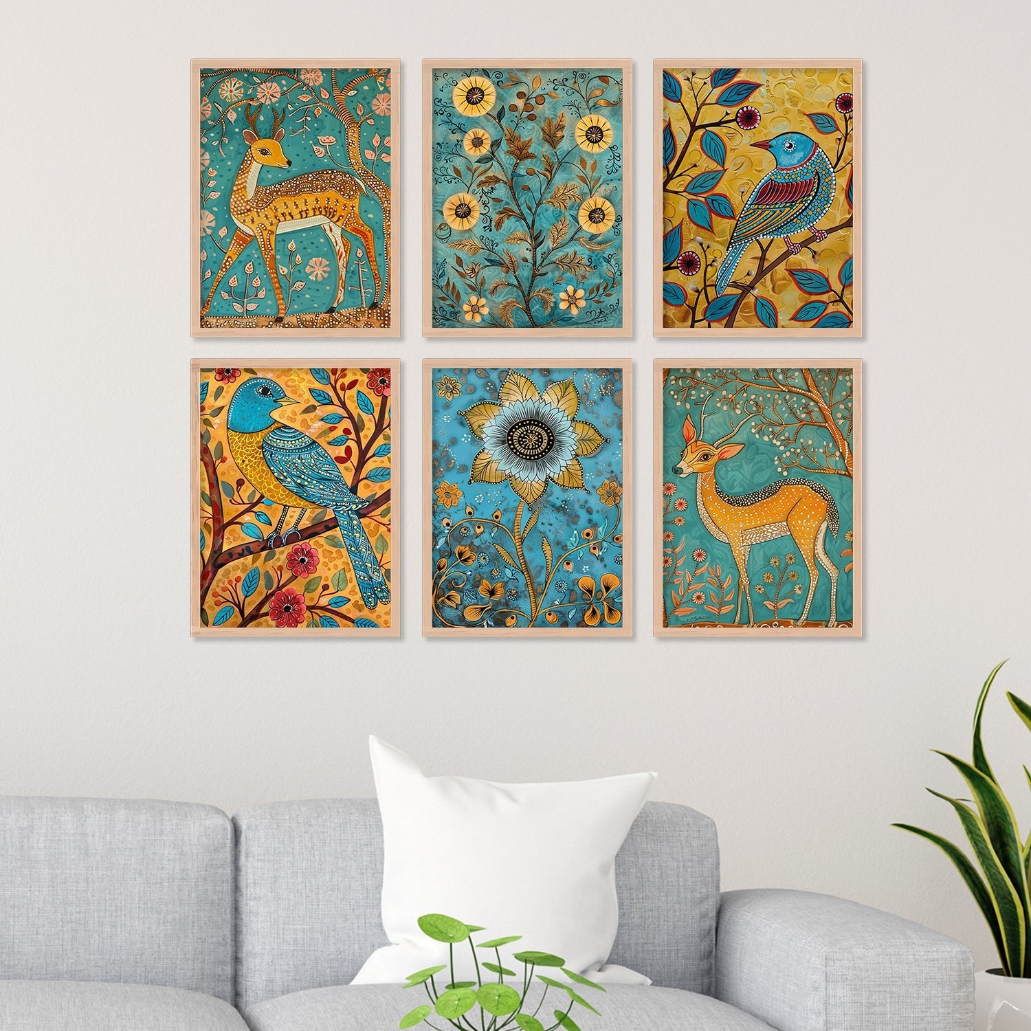 Yellow Deer With Bird Madhubani Wall Art Painting Frames